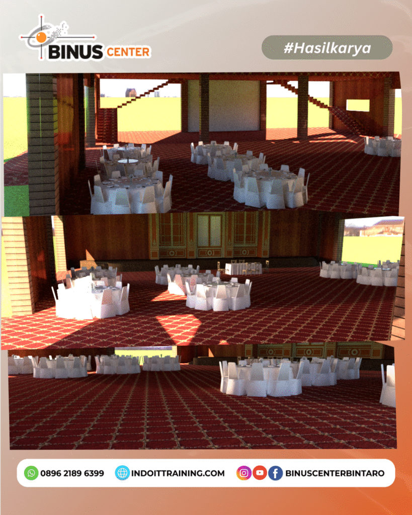 Belajar membuat model 3D untuk arsitektur, interior, maupun desain produk dengan mudah, cepat, dan profesional bersama BINUS Center Bintaro.