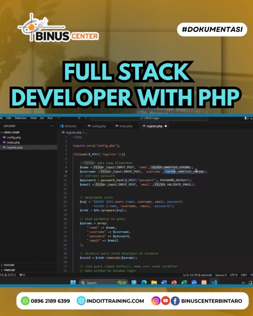 🌟 Ingin menjadi seorang Fullstack Developer profesional yang mampu mengembangkan aplikasi web dari ujung ke ujung? Kini saatnya Anda mengambil langkah besar bersama Kursus “Fullstack Developer with PHP” yang diselenggarakan oleh BINUS Center Bintaro!