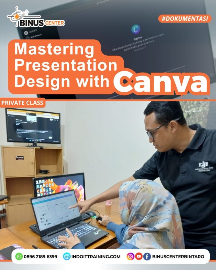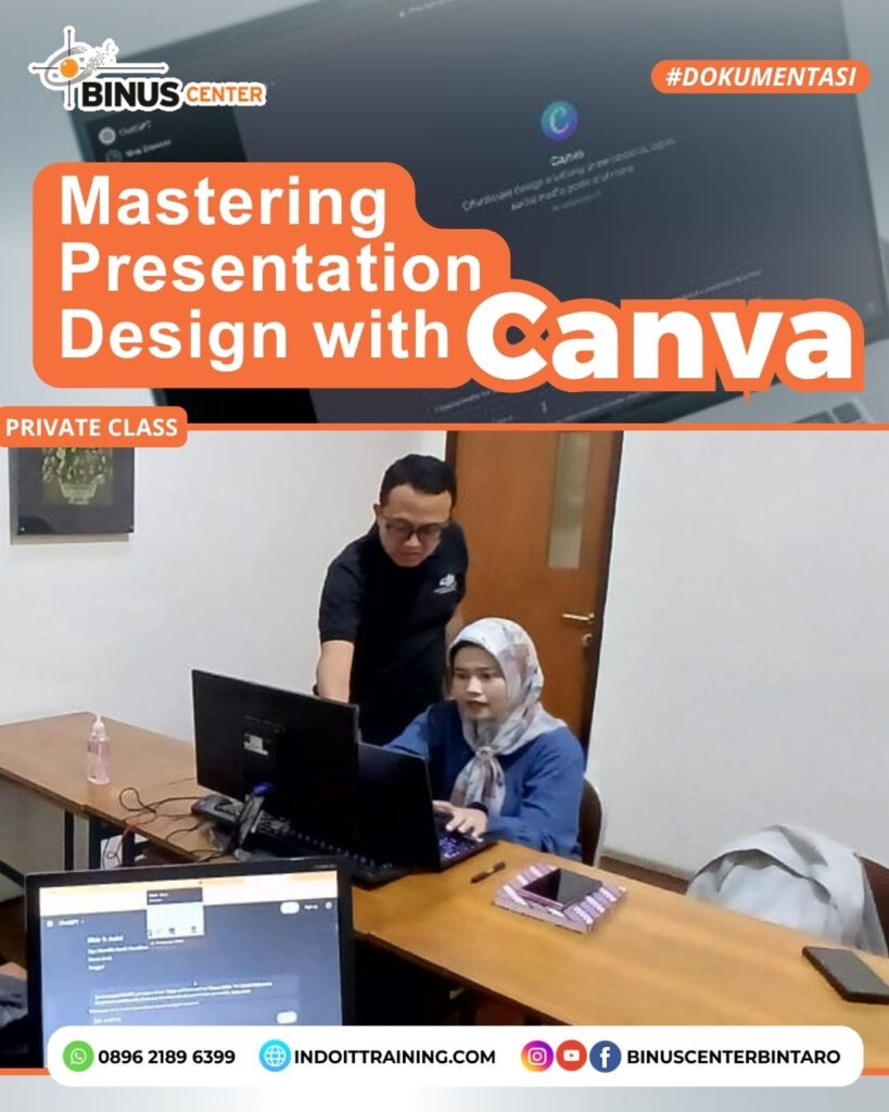 Seperti yang telah diikuti oleh Kak Isdiana dalam Private Class “Mastering Presentation Design with Canva” di BINUS Center Bintaro, kelas ini dirancang untuk membekali peserta dengan keterampilan desain presentasi yang komprehensif. Materi yang dibahas meliputi: