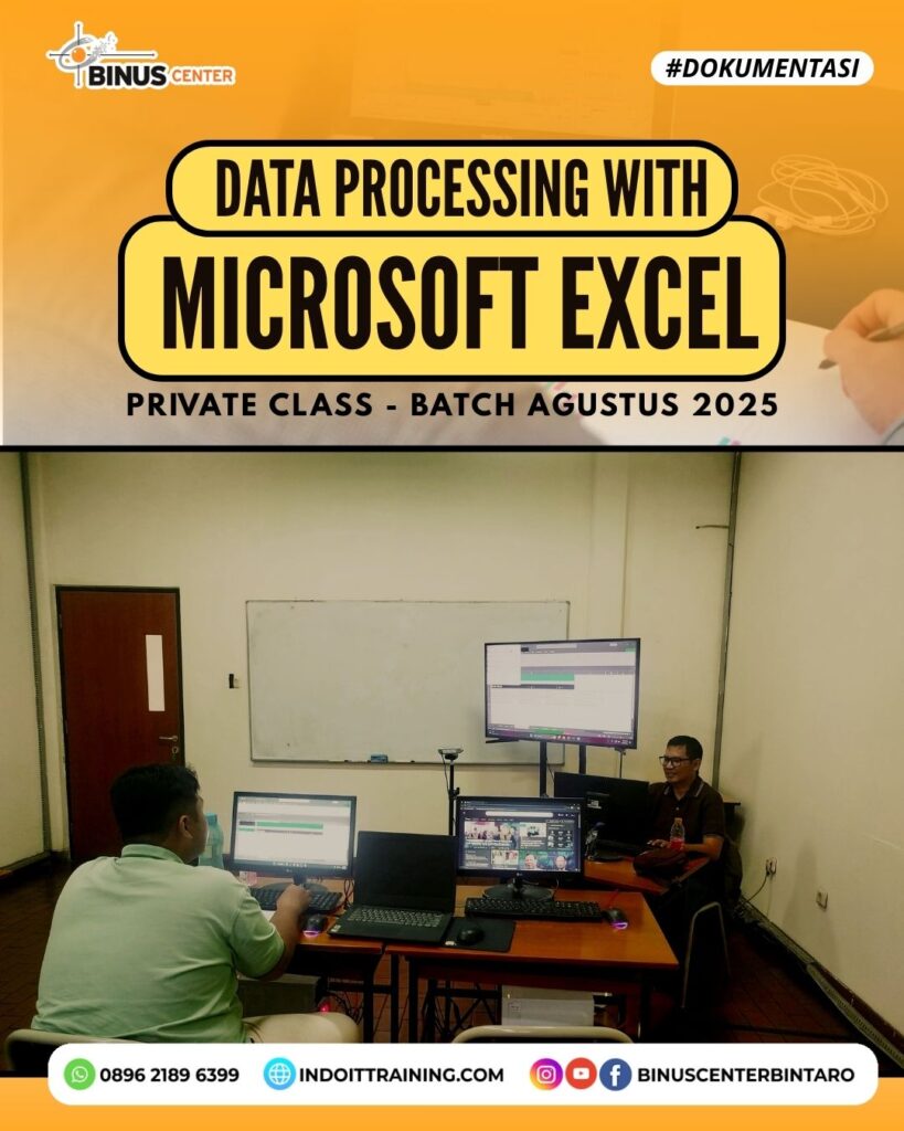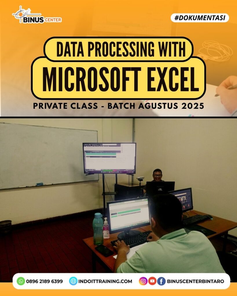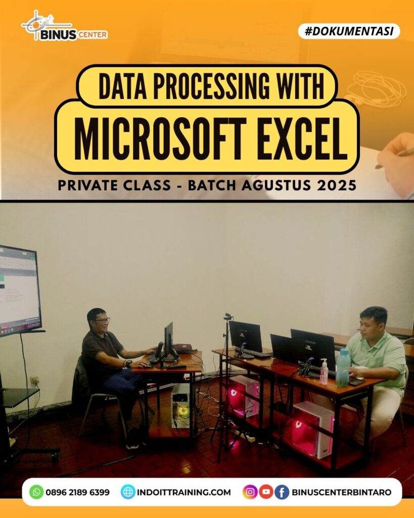 Terima kasih kepada peserta yang telah mengikuti Private Class Data Processing with Microsoft Excel di BINUS Center Bintaro! Kelas ini dirancang khusus untuk membantu Anda menguasai berbagai teknik pengolahan data secara efektif, dari dasar hingga fitur-fitur lanjutan yang sangat dibutuhkan di dunia profesional.