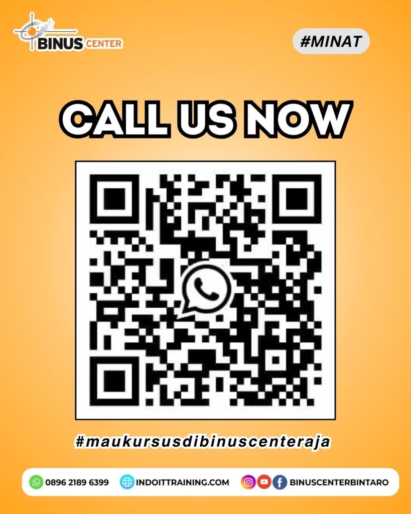 BINUS CENTER BINTARO Jalan Kesehatan Raya No. 21 Bintaro – Jakarta Selatan Telepon: 021 736 4049 WhatsApp: 0896 2189 6399 Email: info_bintaro@binuscenter.com