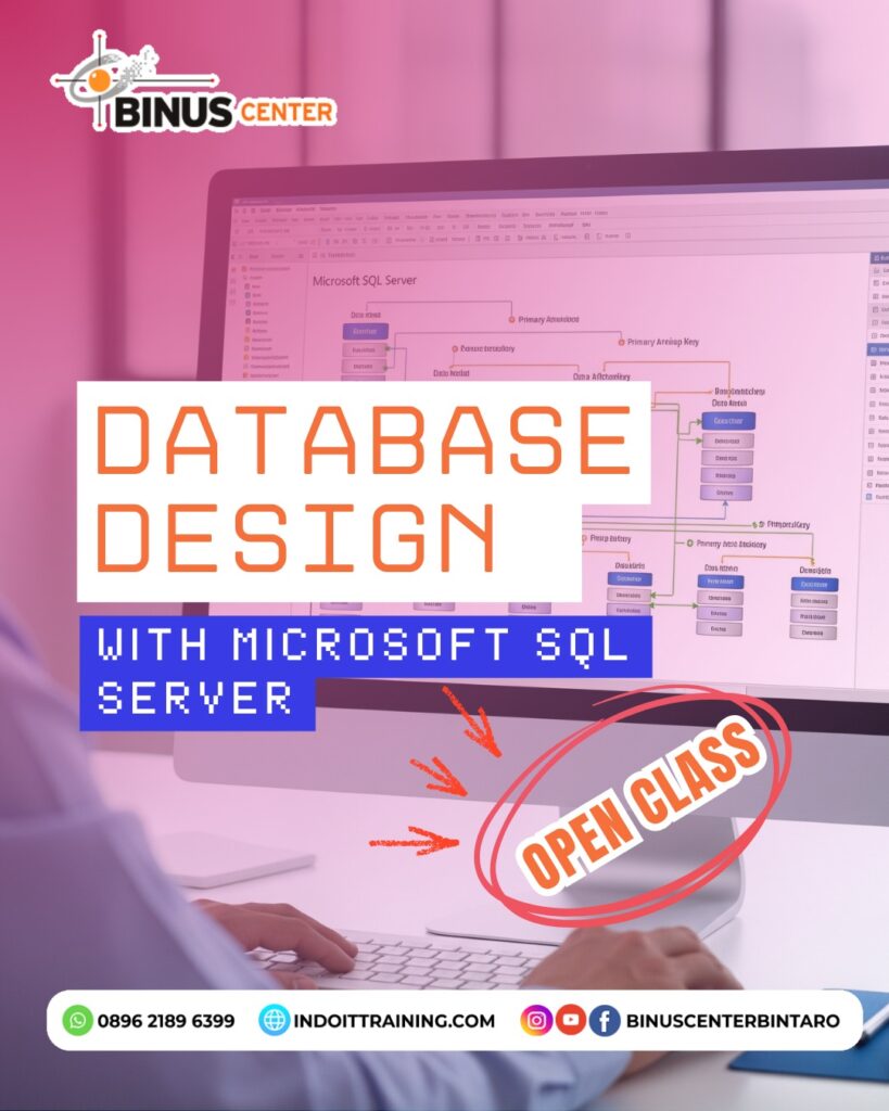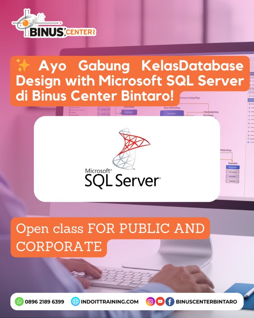 Ingin menguasai desain dan manajemen database yang profesional? Bergabunglah di kelas Database Design with Microsoft SQL Server di BINUS Center Bintaro! Kelas ini dirancang untuk pemula hingga profesional yang ingin membangun struktur database yang efisien, aman, dan sesuai dengan standar industri menggunakan salah satu tools paling populer: Microsoft SQL Server.